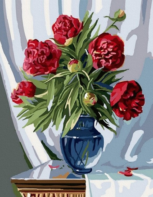 Tapyba pagal skaičius Raudoni bijūnai vazoje 40x50 cm