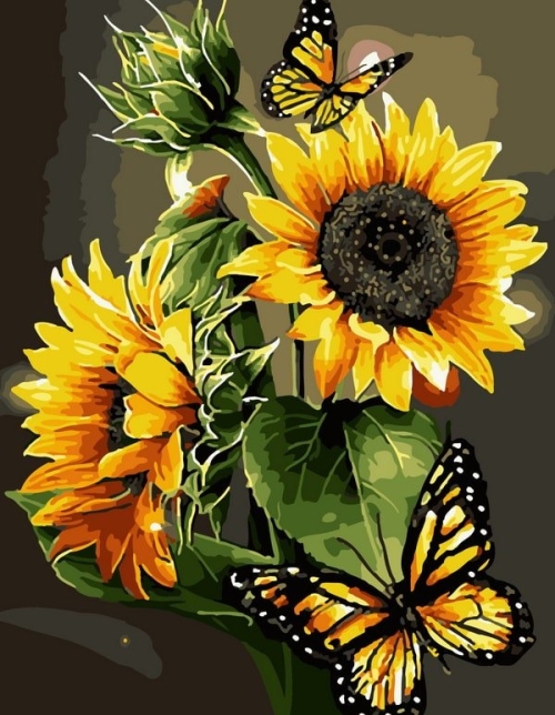 Tapyba pagal skaičius Saulėgrąžos su monarcho drugeliais 30x40 cm