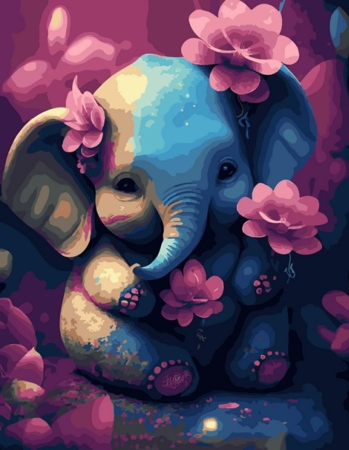 Tapyba pagal skaičius Mielas drambliukas su gėlėmis 40x50 cm