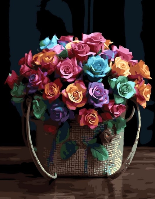Tapyba pagal skaičius Spalvingas rožių krepšelio natiurmortas 40x50 cm