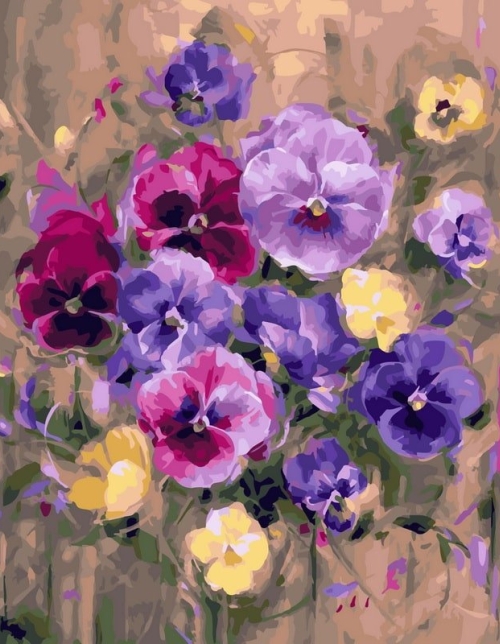Tapyba pagal skaičius Pastelinių našlaičių puokštė 40x50 cm