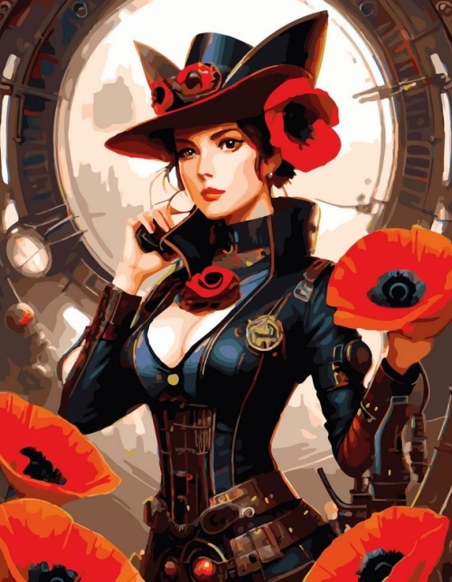 Tapyba pagal skaičius Paslaptinga moteris su aguonomis (vintažinis stilius) 40x50 cm