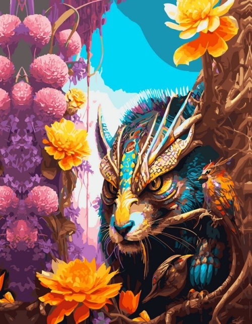 Tapyba pagal skaičius Fantazijos miško padaras tarp gėlių 40x50 cm