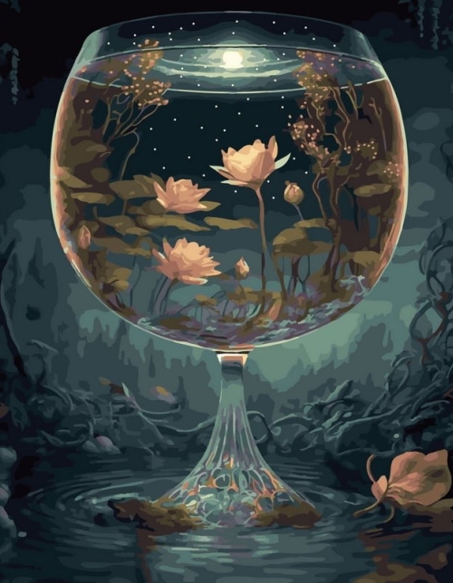 Tapyba pagal skaičius Mėnulio apšviestos bijūnų giraitės prie ežero 40x50 cm