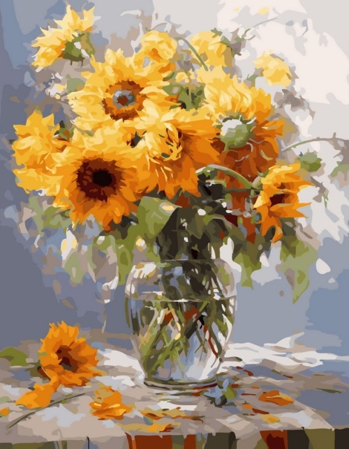Tapyba pagal skaičius Saulėgrąžos stikliniame inde 40x50 cm
