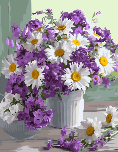 Tapyba pagal skaičius Vasaros puokštė su ramunėlėmis ir levandomis 40x50 cm