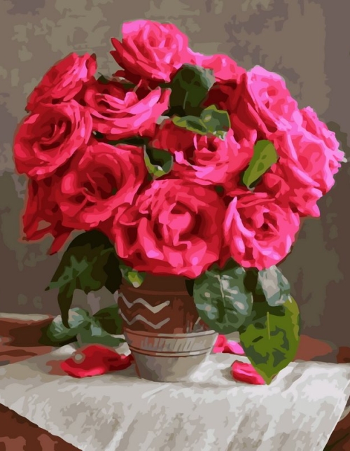 Tapyba pagal skaičius Raudonų rožių natiurmortų puokštė 40x50 cm