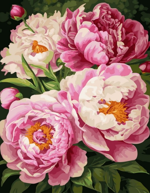 Tapyba pagal skaičius Švelniai rožinių bijūnų puokštė 40x50 cm