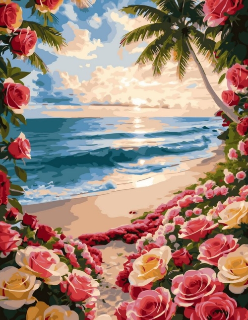 Tapyba pagal skaičius Tropinių rožių paplūdimio rojus 40x50 cm