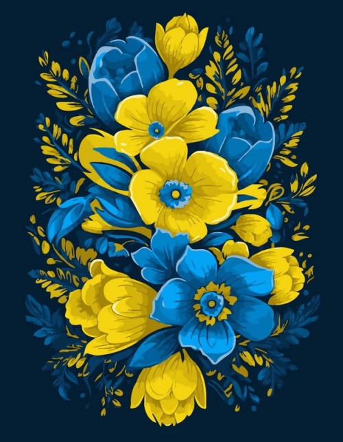 Tapyba pagal skaičius Mėlynos ir geltonos gėlių kompozicija 40x50 cm