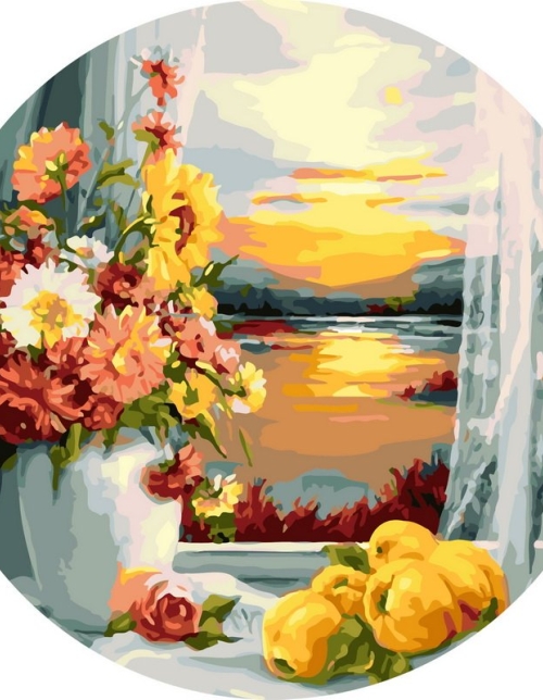Tapyba pagal skaičius Gėlės prie lango saulėlydžio metu 40x40 cm