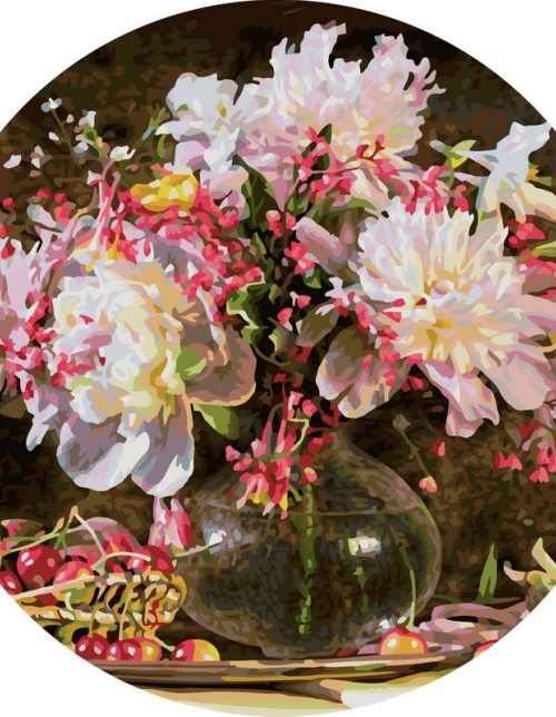 Tapyba pagal skaičius Baltieji bijūnai su raudonomis uogomis 40x40 cm