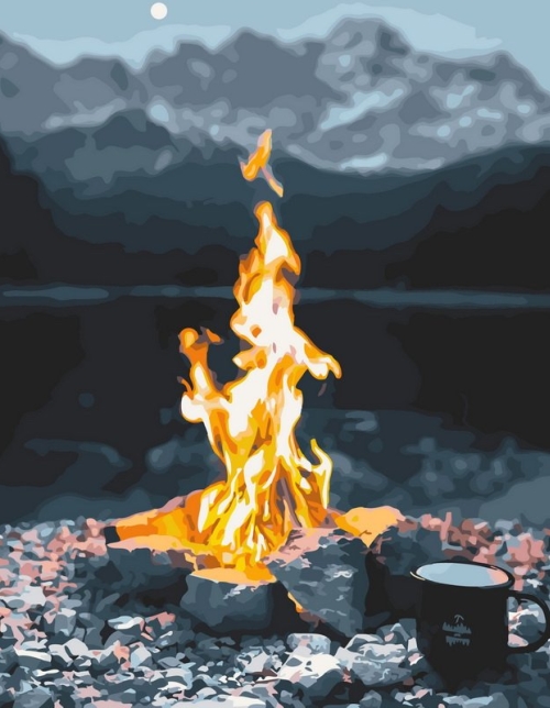 Tapyba pagal skaičius Laužavietė prie ežero naktį 40x50 cm