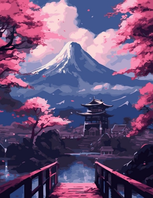 Tapyba pagal skaičius Fudžio kalnas ir Sakuros tiltas 40x50 cm