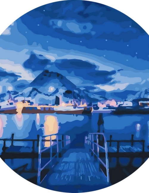 Tapyba pagal skaičius Mėlynos nakties uosto vaizdas 40x40 cm