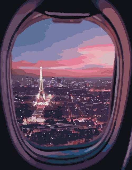 Tapyba pagal skaičius Paryžiaus vaizdas pro lėktuvo langą 40x50 cm
