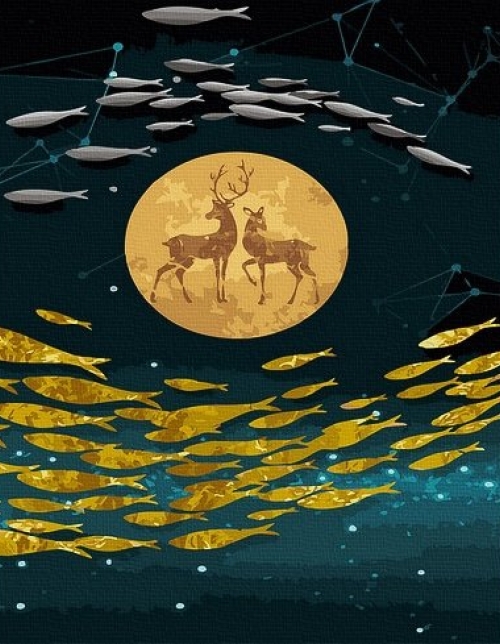 Tapyba pagal skaičius Auksinės žuvelės mėnulio šviesoje 40x50x3 cm