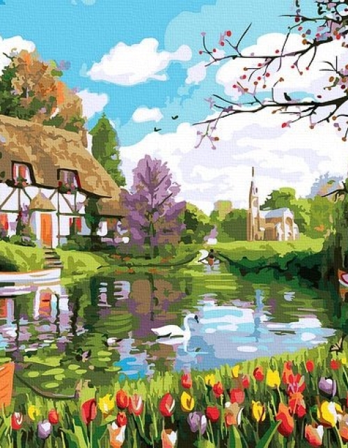 Tapyba pagal skaičius Namelis prie ežero 40x50 cm