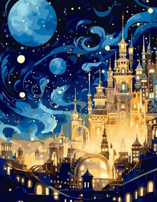 Tapyba pagal skaičius Mėnulio apšviesta pilis 40x50 cm
