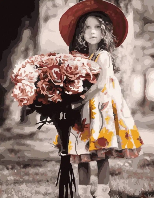 Tapyba pagal skaičius Mergina su puokšte 40x50 cm