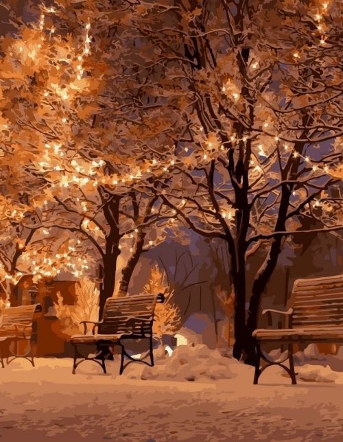 Tapyba pagal skaičius Švytintys žiemos parko suolai 40x50 cm